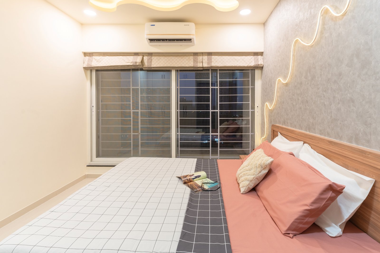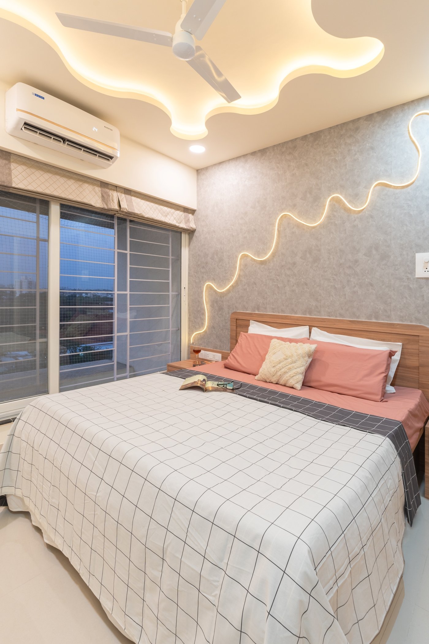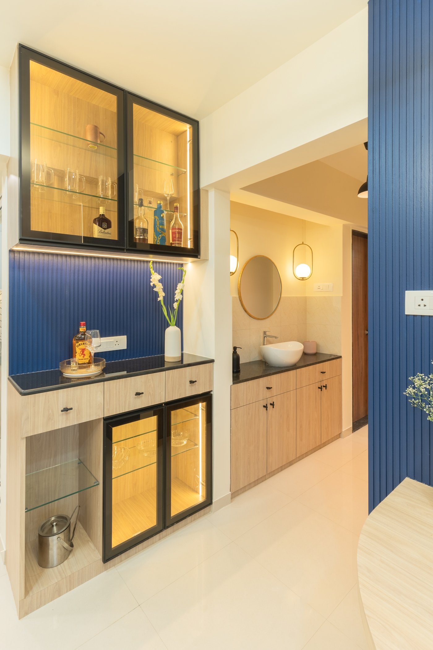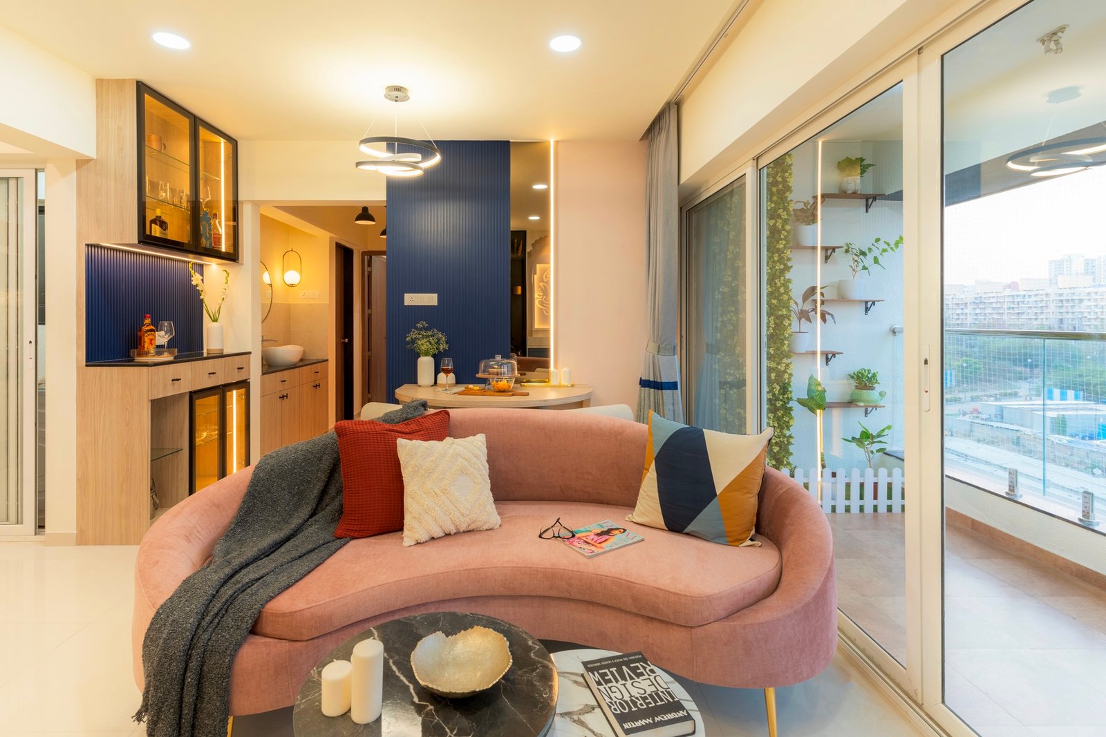 This residential project showcases the perfect blend of contemporary aesthetics and functional design, demonstrating The Black Window Studio’s expertise in creating sophisticated urban living spaces. The design seamlessly integrates modern elements with traditional Indian motifs, creating a unique and personalized living environment.