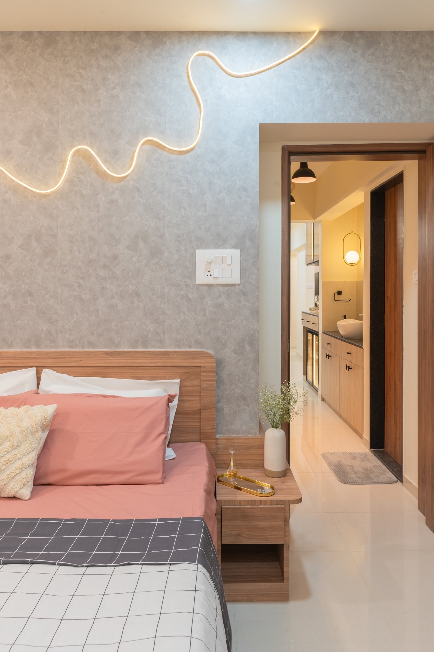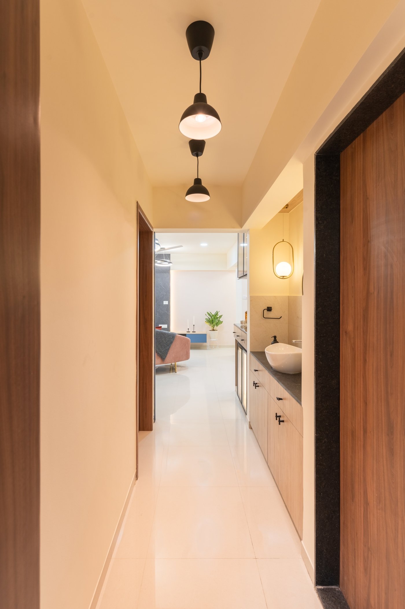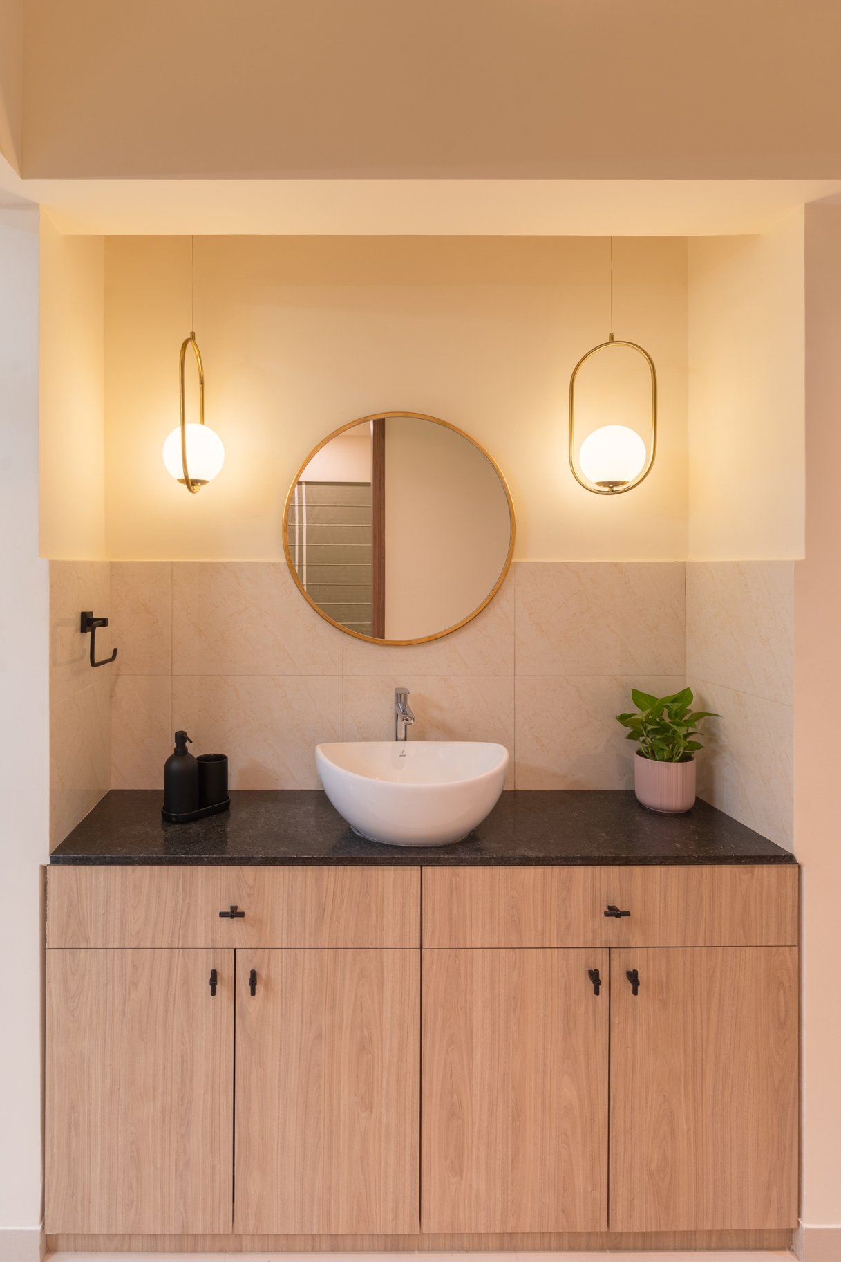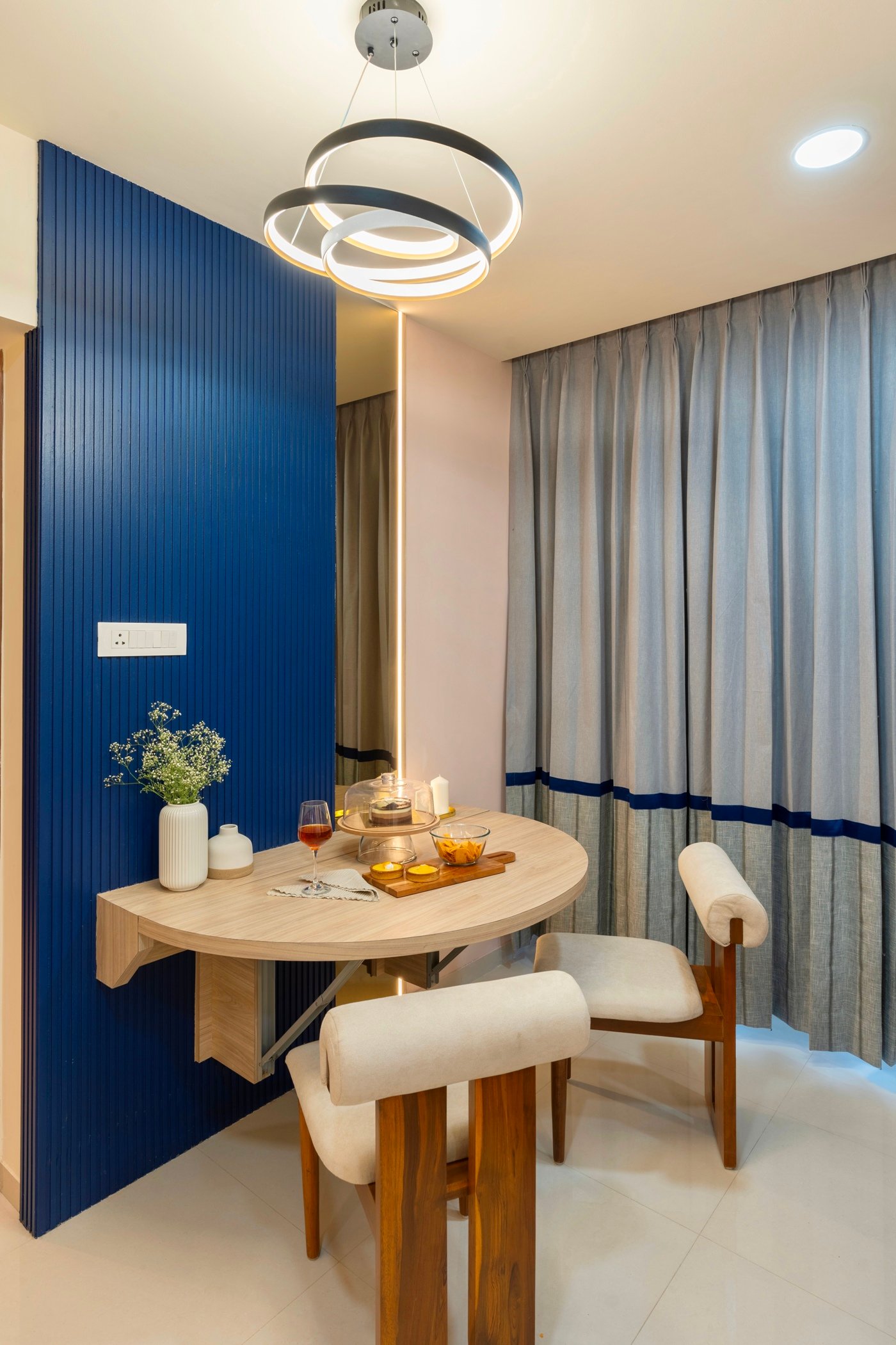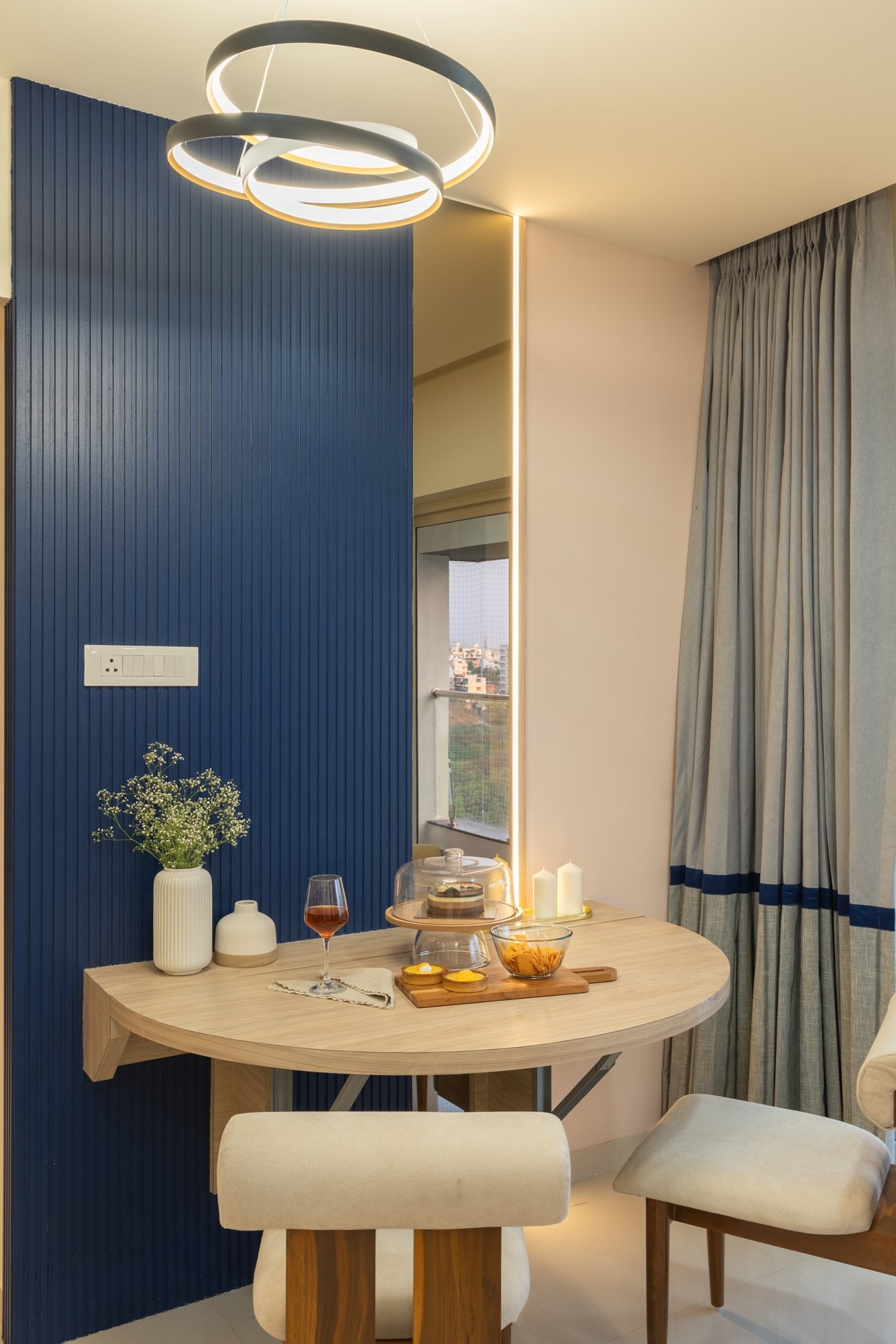 This residential project showcases the perfect blend of contemporary aesthetics and functional design, demonstrating The Black Window Studio’s expertise in creating sophisticated urban living spaces. The design seamlessly integrates modern elements with traditional Indian motifs, creating a unique and personalized living environment.
